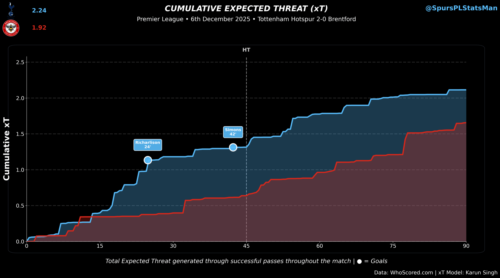 2.24 Expected Threat (xT), higher than our season average of 1.95.